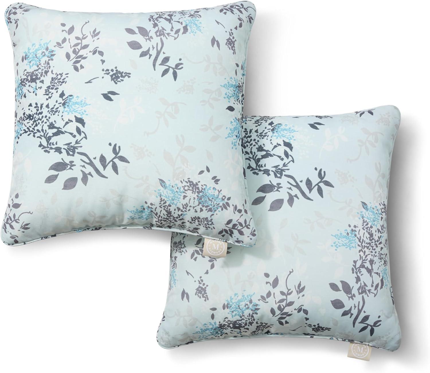 Martha Stewart Charming Foliage Indoor Outdoor Decorative Lumbar Pillow 2-Pack Set, UV Fade Resistant, Water Repellent, Printed Floral Design, Aqua Blue, 11″x18″(Warm Grey)