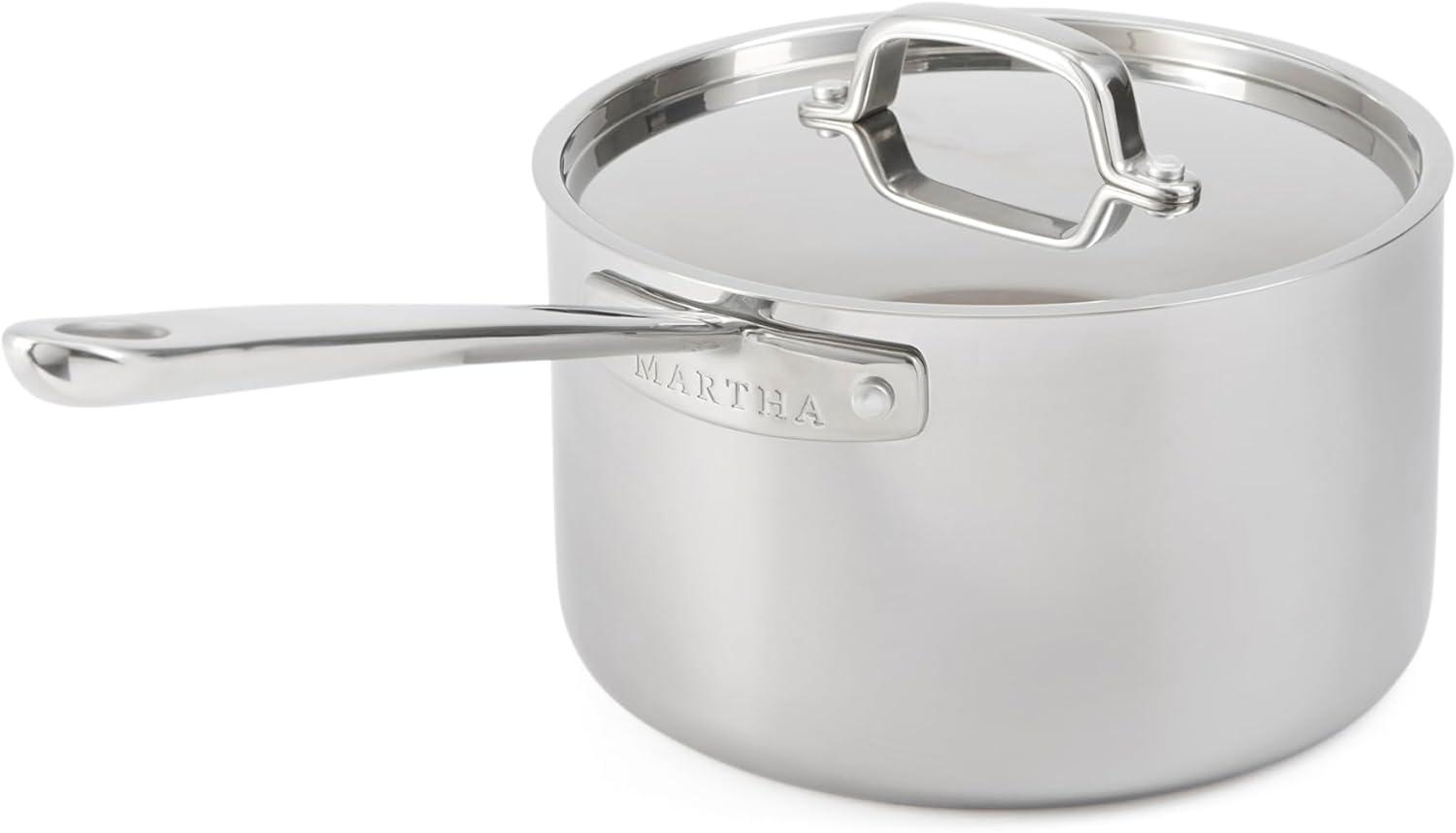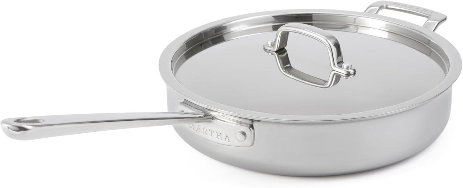 Martha Stewart Martha 3.5-Quart Straight Sided Triply Stainless Steel Saute Pan w/Lid(Stainless Steel)