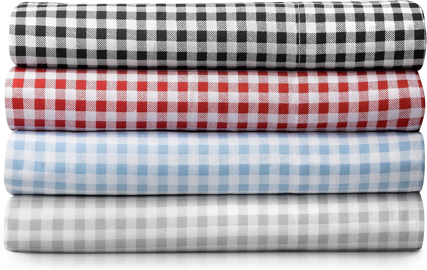 Martha Stewart Ruth Ditsy Floral 300TC 100% Cotton Percale Sheet Set, Blue/White, 4 Piece – 1 Flat Sheet, 1 Fitted Sheet, 2 Std Pillowcases, Breathable Cotton Printed Bed Sheets, Queen Size(Queen)