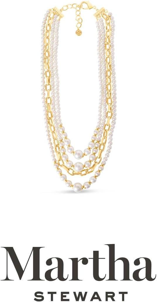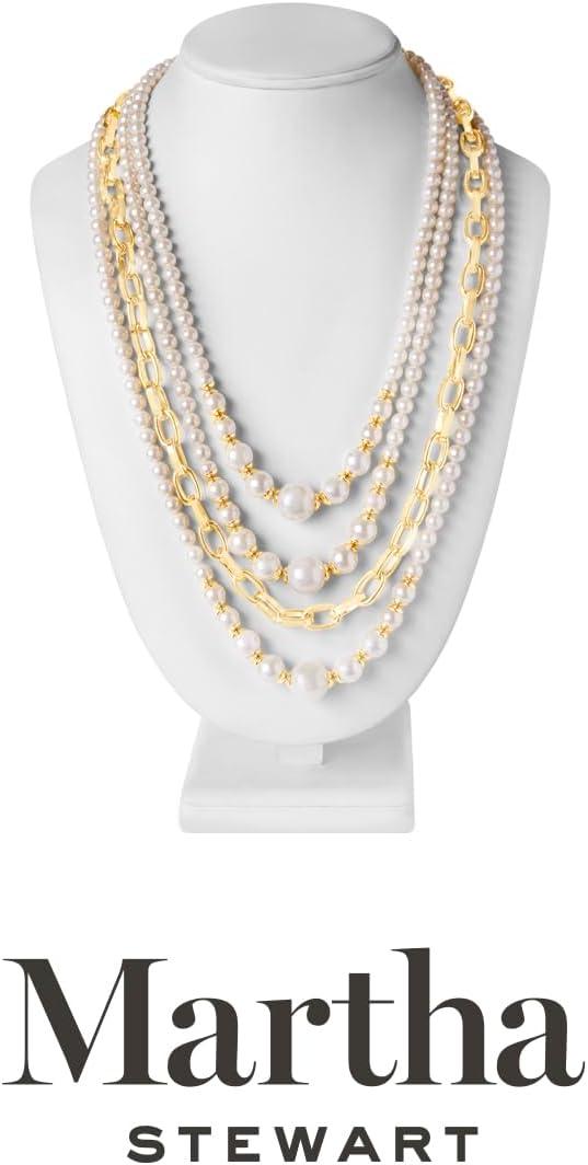 Martha Stewart Four Strand Pearl and Chain Necklace In Gold, Long, For Women
