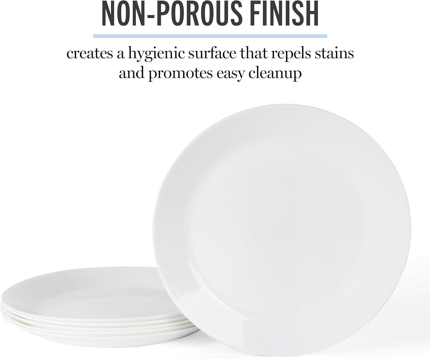 Martha Stewart Opalton 6-Piece 10-Inch Dinner Plates – Chip and Break Resistant Opal Glass Plates, Durable and Lightweight Dinnerware Set for Everyday Use