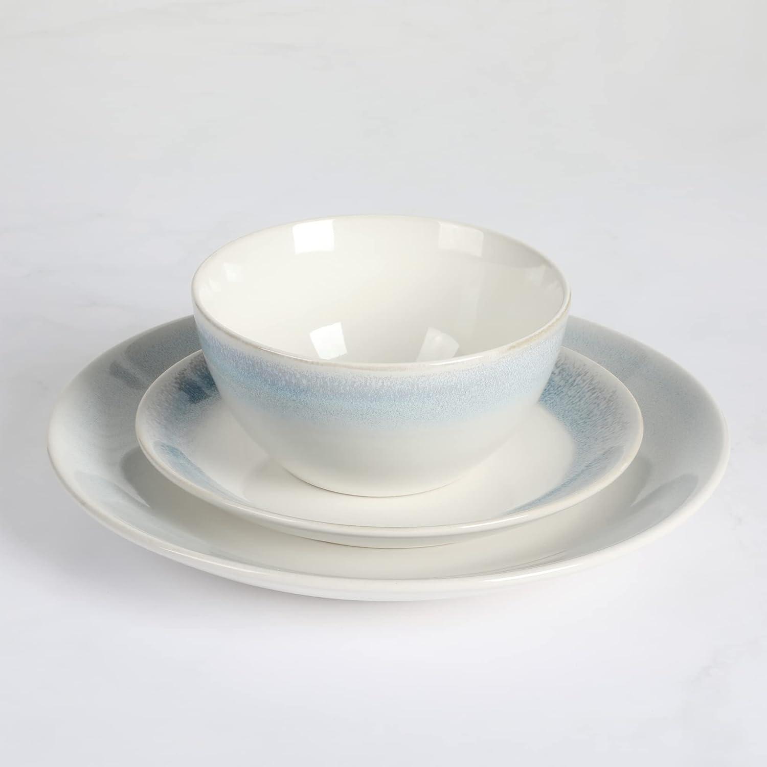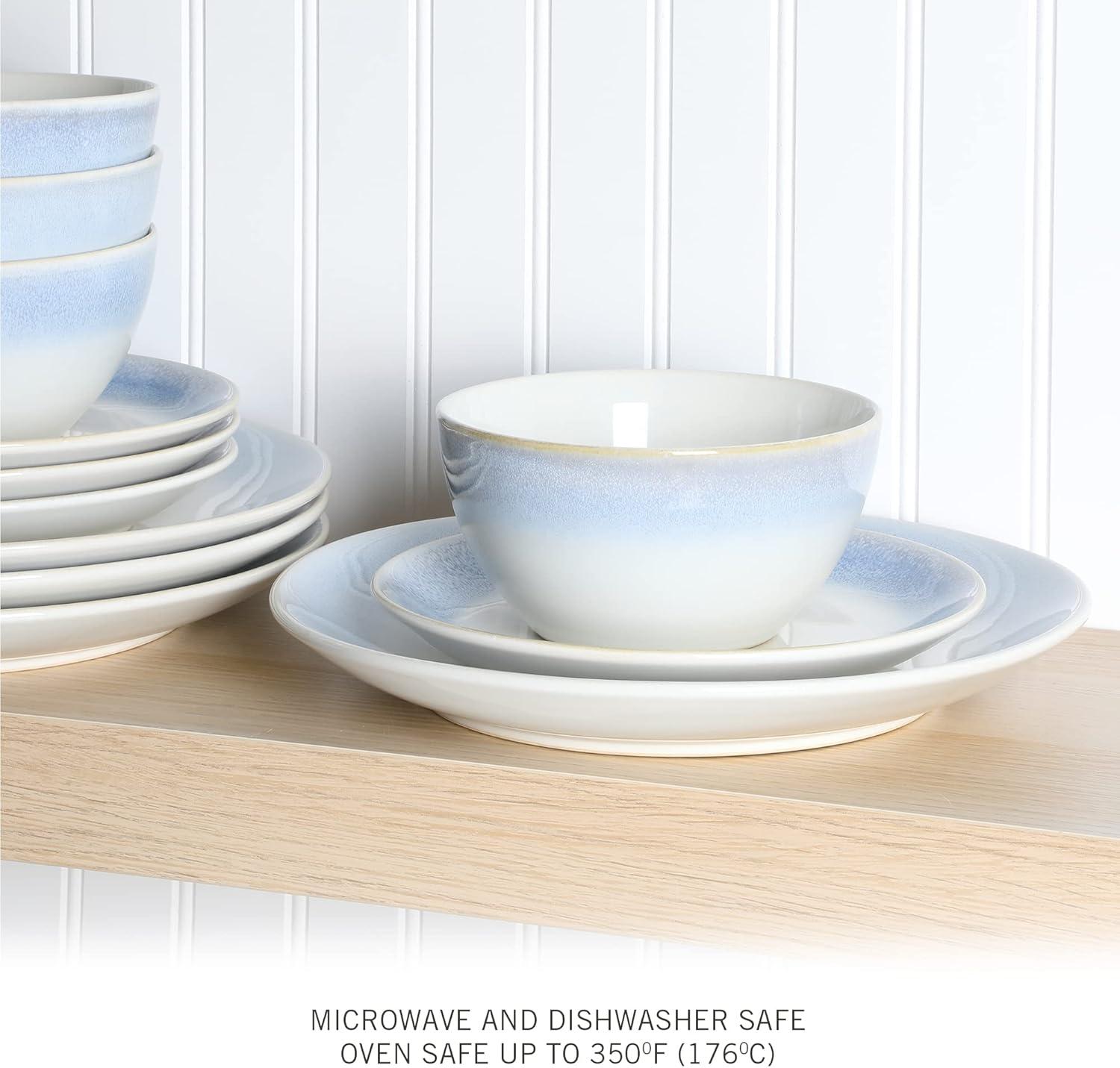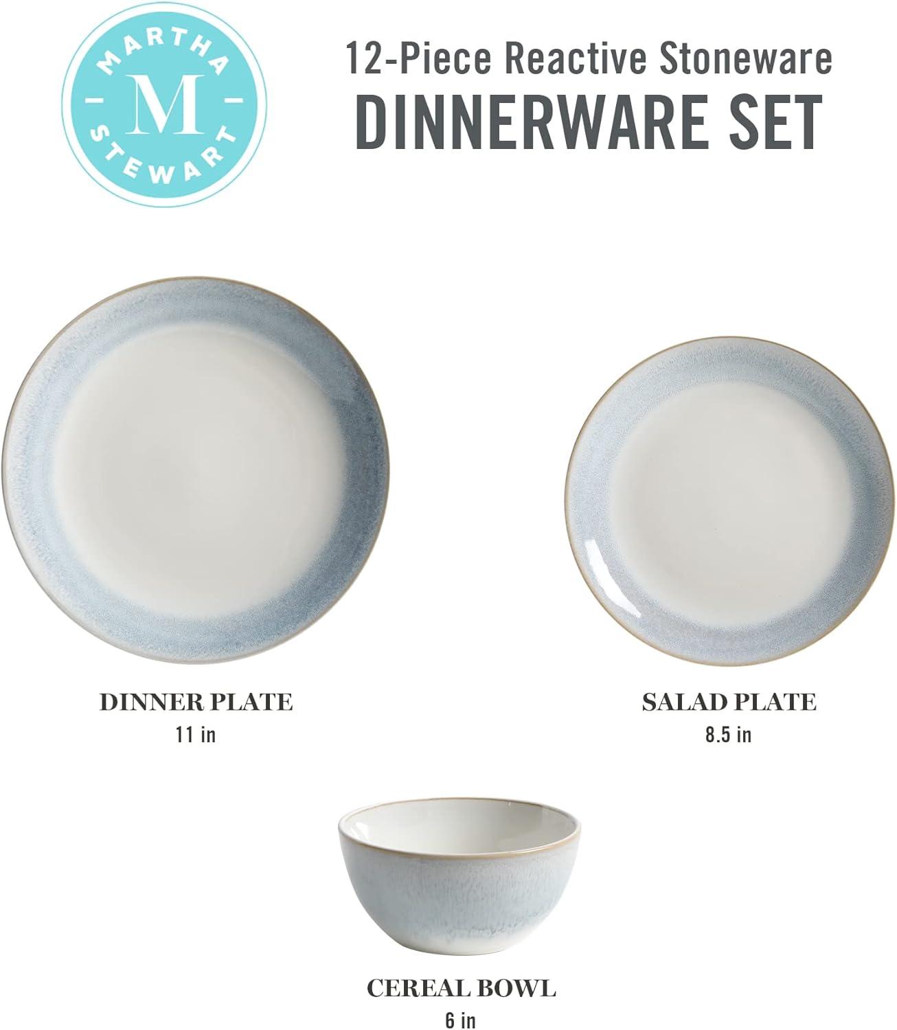 Martha Stewart Perry Street 12pc Stoneware Reactive Dinnerware Set – White w/Blue Rim