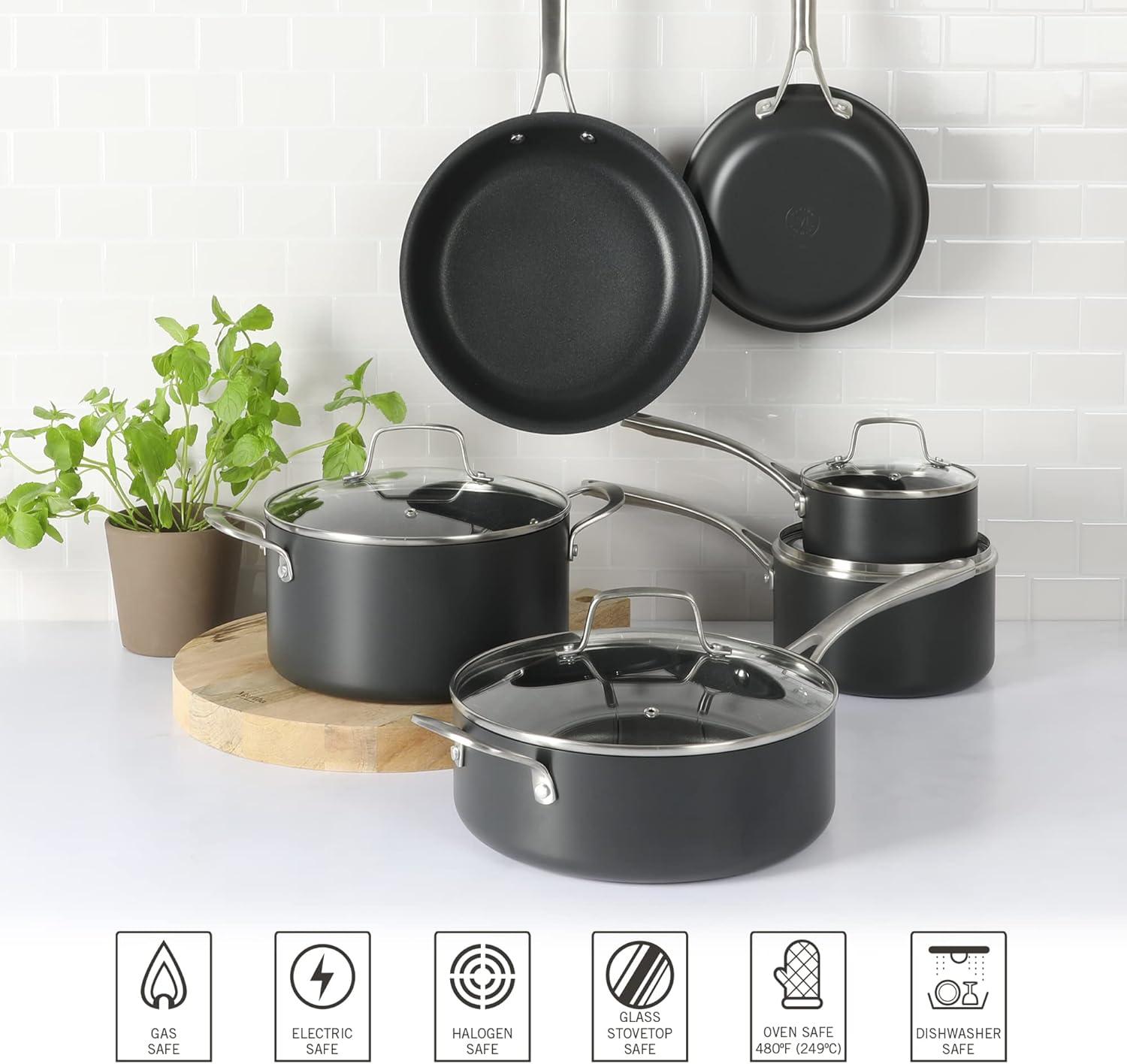 Martha Stewart Bosworth 10 Piece Hard Anodized Nonstick Aluminum Cookware Set – Black(Cookware Set)