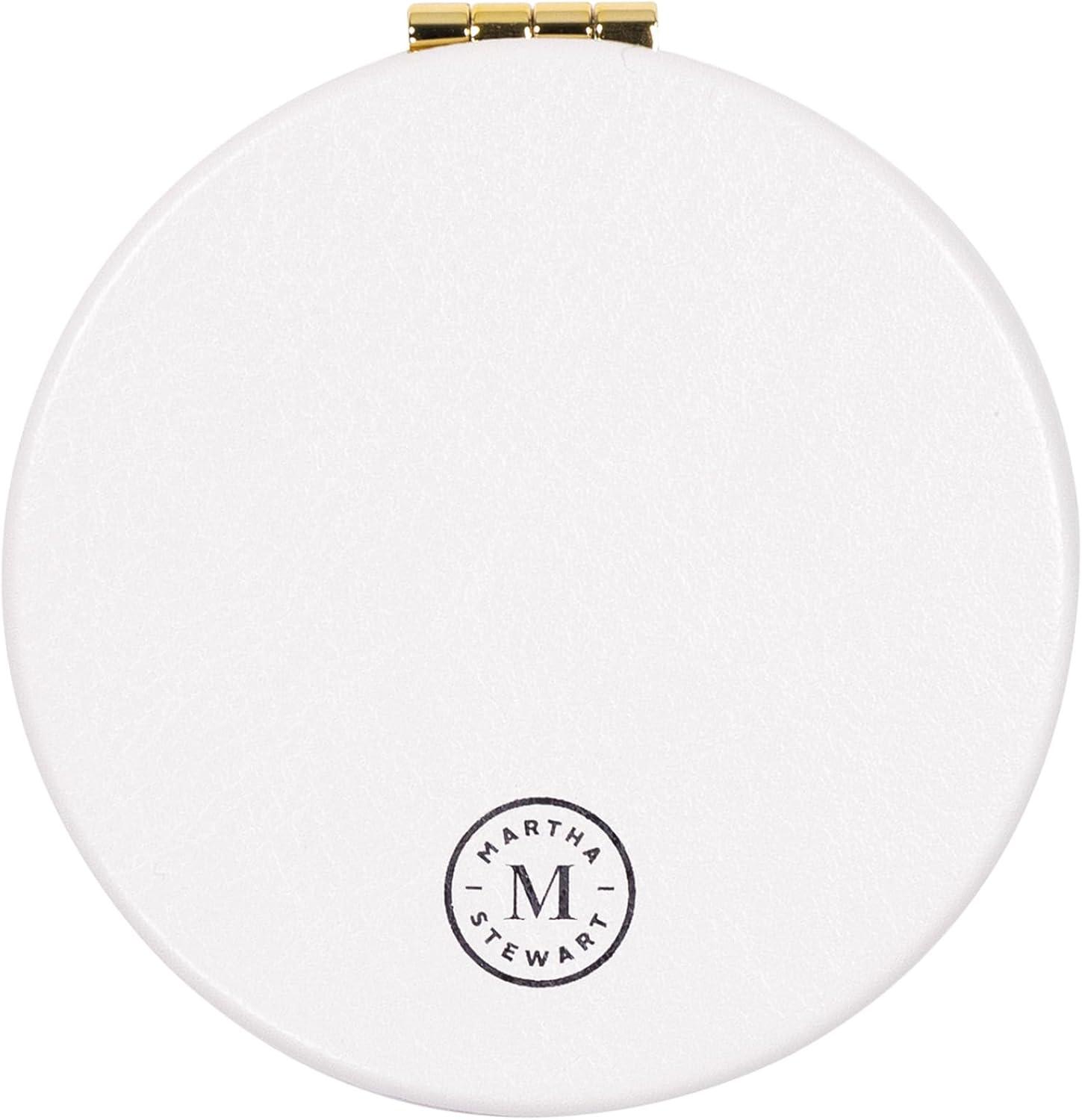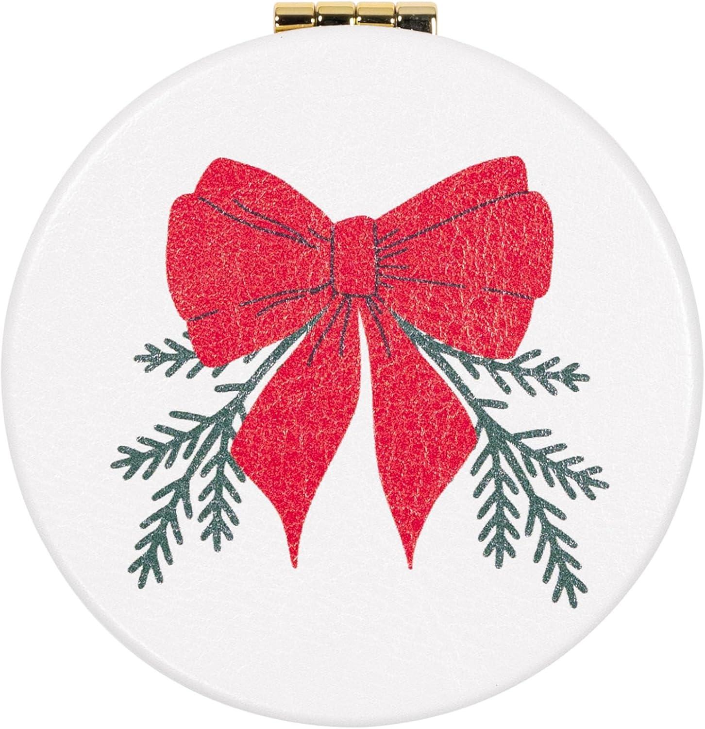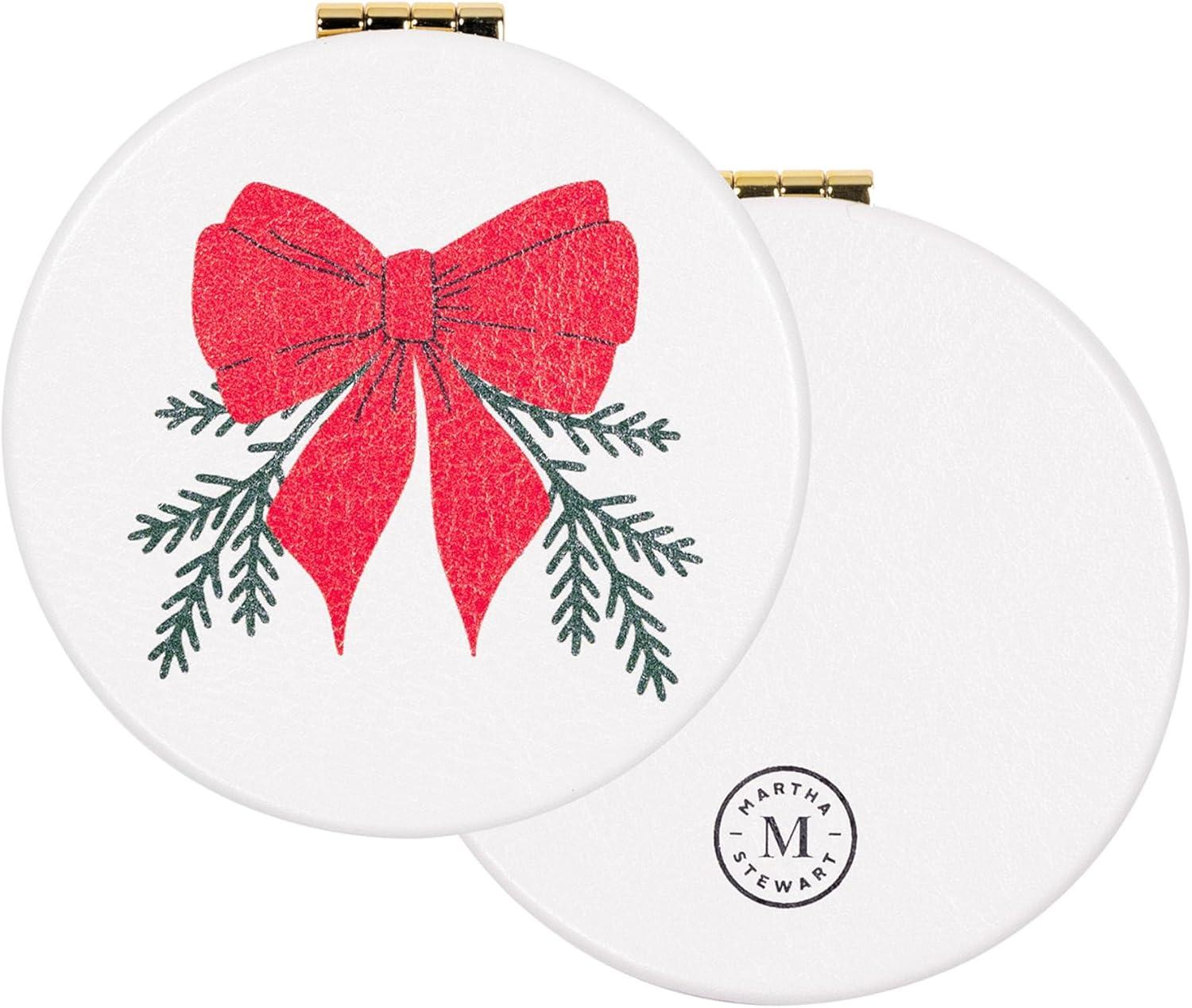 Martha Stewart Compact Mirror, Slim Pocket Mirror with Standard & Magnified Glass, Travel Makeup Mirror for Purse or Stocking Stuffer (Holiday Bow)