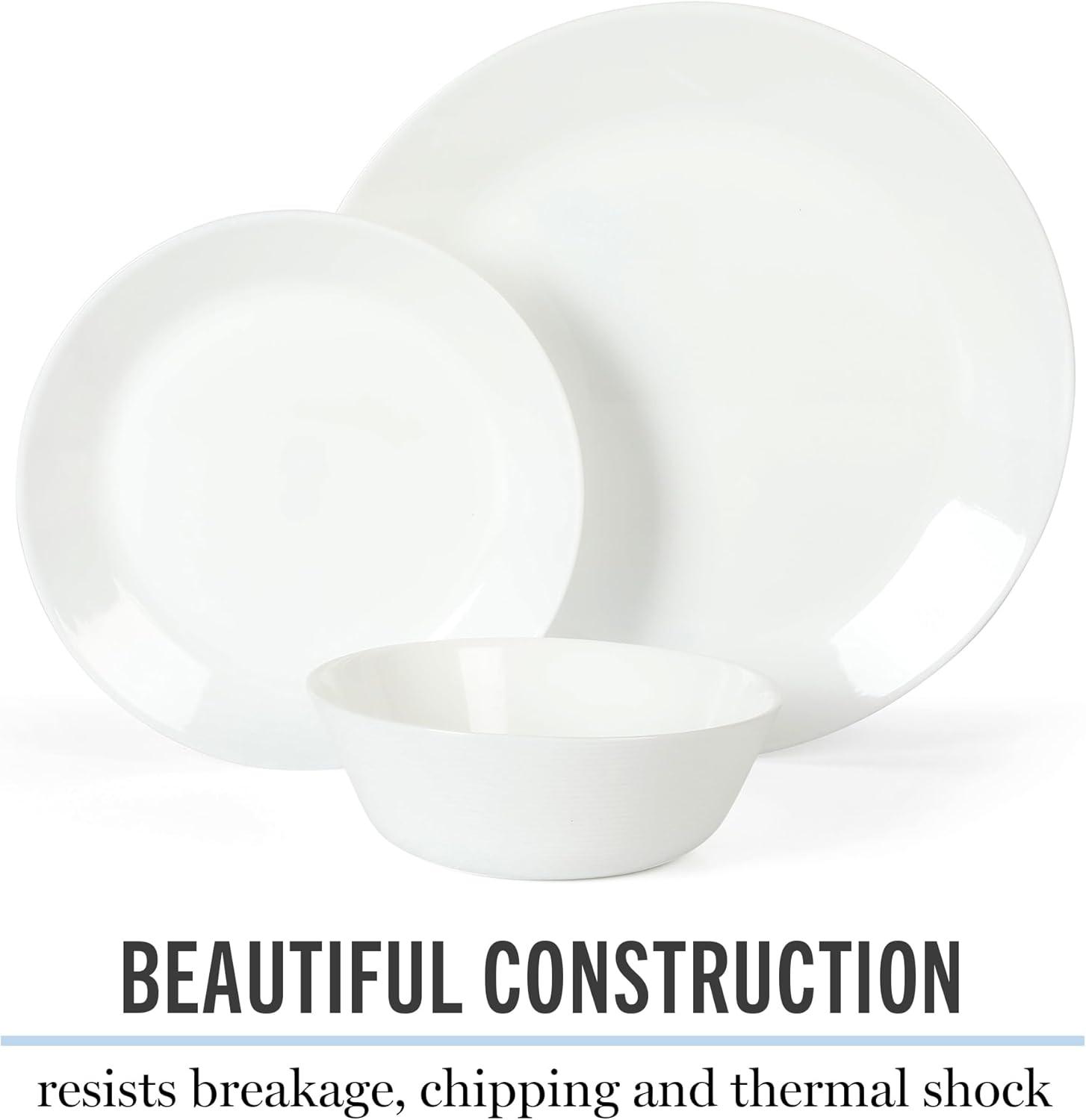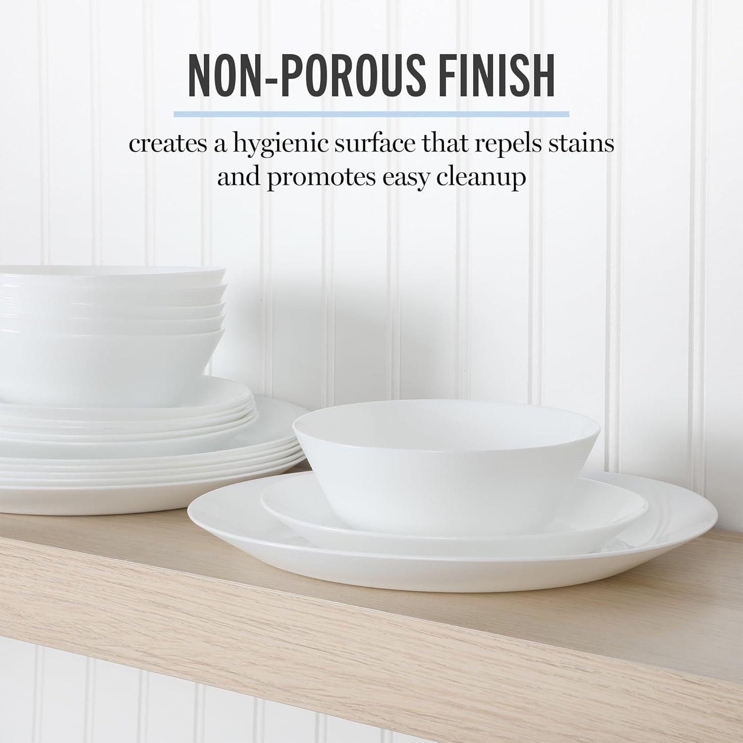 Martha Stewart Opalton 18-Piece Dinnerware Set – Chip and Break Resistant Opal Glass Plates and Bowls, Lightweight White Dinner Set for 6, Microwave and Dishwasher Safe